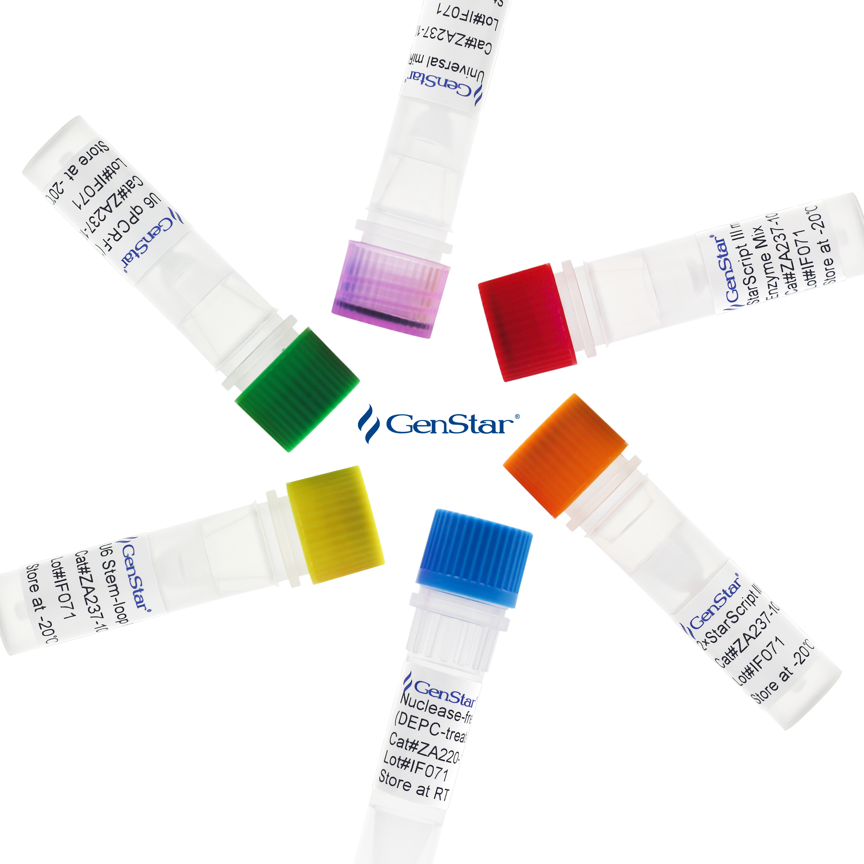 推薦使用通用的莖環(huán)序列為 5'-GTCGTATCCAGTGCAGGGTCCGAGGTATTCGCACTGGATACGAC-3',也可根據(jù)實驗需求選擇其它莖環(huán)序列。通常情況下,逆轉(zhuǎn)錄引物只需在莖環(huán)序列上添加目的 miRNA 3’ 端的 6 個反向互補堿基即可。 此方法特異性高,只對成熟的 miRNA 進(jìn)行反轉(zhuǎn)錄,不受其前體干擾,序列高度同源的 miRNA 也可以精確區(qū)分。使用本產(chǎn)品獲得的逆轉(zhuǎn)錄產(chǎn)物可直接用于后續(xù)的染料法或探針法熒光定量檢測。染料法推薦使用本公司的 2×RealStar Fast SYBR qPCR Mix(Cat#A301),探針法推薦使用本公司的 2×RealStar Fast Probe Mix(Cat#A351),以獲得更優(yōu)的實驗結(jié)果。