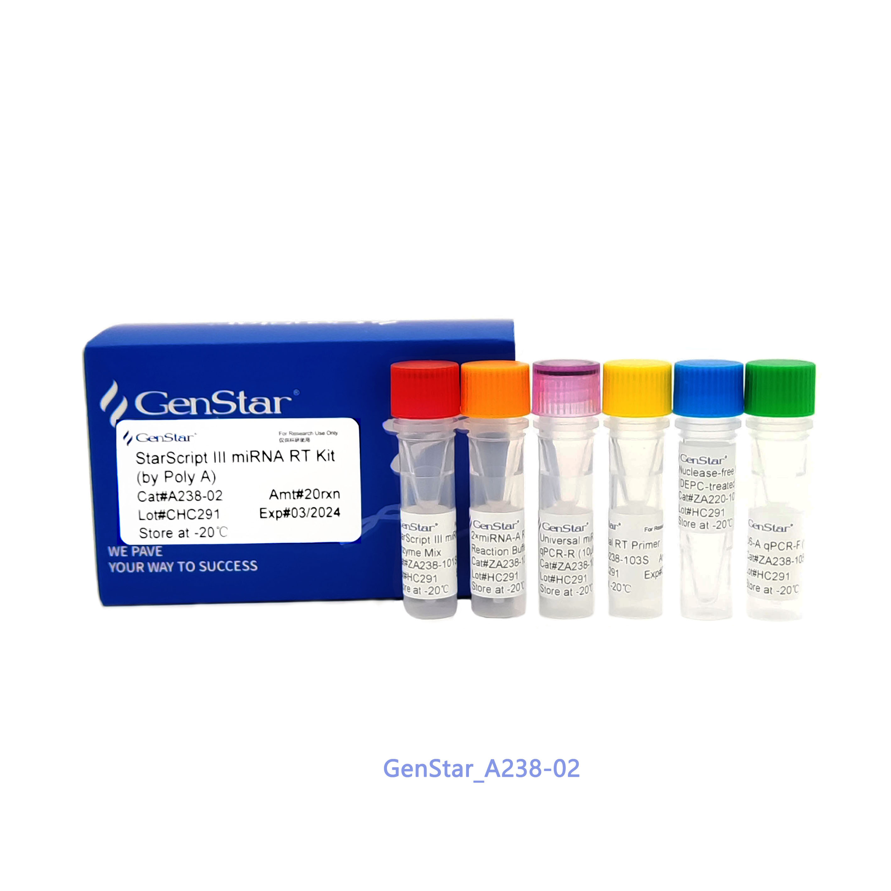 本試劑盒適用于加尾法 microRNA(簡(jiǎn)稱 miRNA)cDNA 第一鏈合成的專用試劑盒,包含了 miRNA 加 A 尾反應(yīng)和逆轉(zhuǎn)錄反應(yīng)的所有原料,并經(jīng)過精心優(yōu)化,可保證 miRNA 3' 末端的 Poly(A) 修飾過程和逆轉(zhuǎn)錄過程同時(shí)高效進(jìn)行。StarScript III miRNA-A Enzyme Mix 中含有 Poly(A) Polymerase(簡(jiǎn)稱 PAP)和 StarScript III 反轉(zhuǎn)錄酶。PAP 加 A 尾效率高,可特異性識(shí)別單鏈 RNA,有效避免具有雙鏈或者莖環(huán)結(jié)構(gòu)的 miRNA 前體的逆轉(zhuǎn)錄反應(yīng);StarScript III 反轉(zhuǎn)錄酶經(jīng)過改造,喪失了 RNase H 活性,增加了與 RNA 的親和力,使得 miRNA 的逆轉(zhuǎn)錄效率和靈敏度大幅提高。