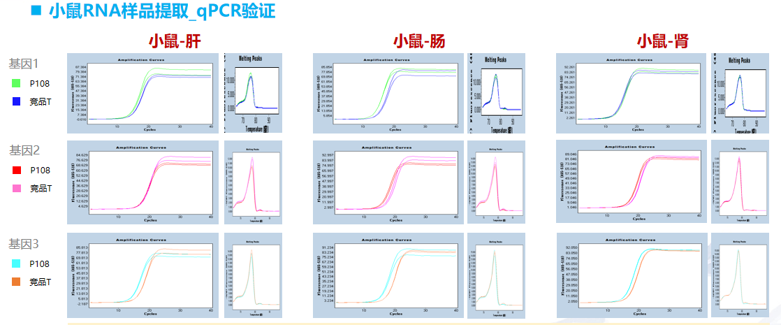 P108 提取的 RNA,經(jīng) qPCR 驗(yàn)證,其 CT 值較競(jìng)品 T 更小,RNA 質(zhì)量更理想。