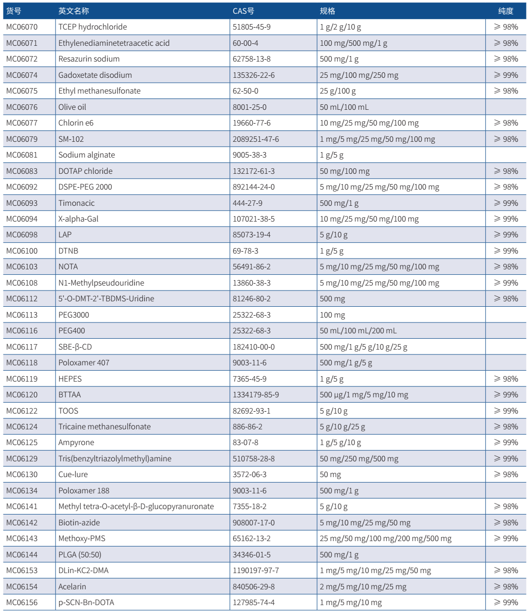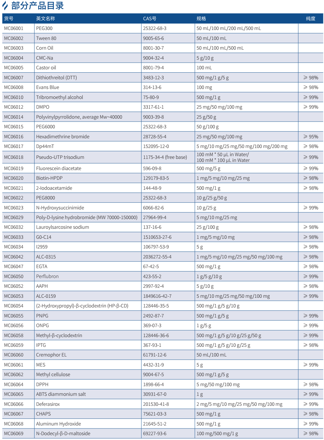本界面只顯示部分產(chǎn)品信息,若想獲取更多小分子系列產(chǎn)品信息,請聯(lián)系我們銷售或致電技術(shù)支持熱線:400-666-3332
