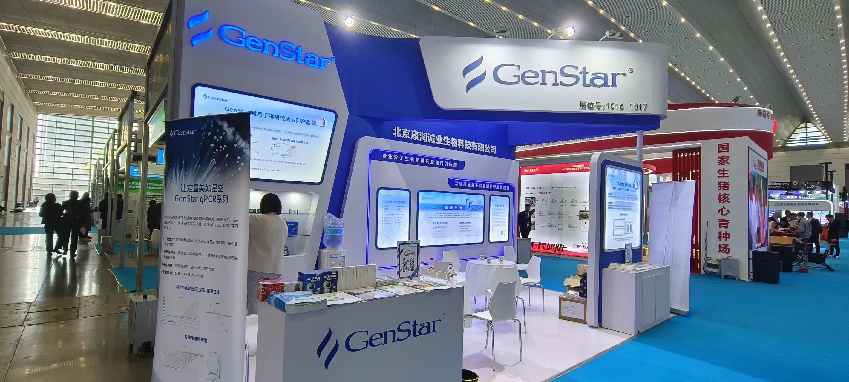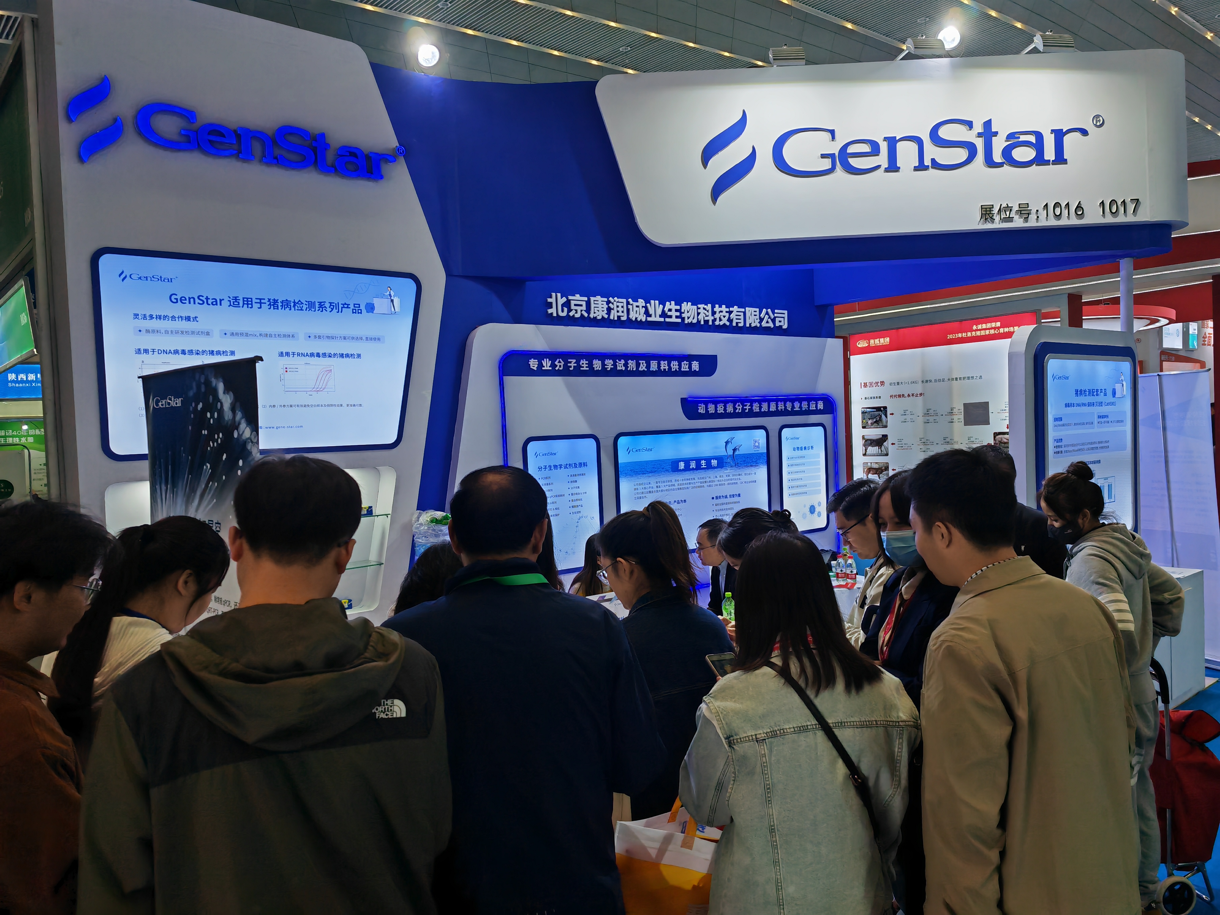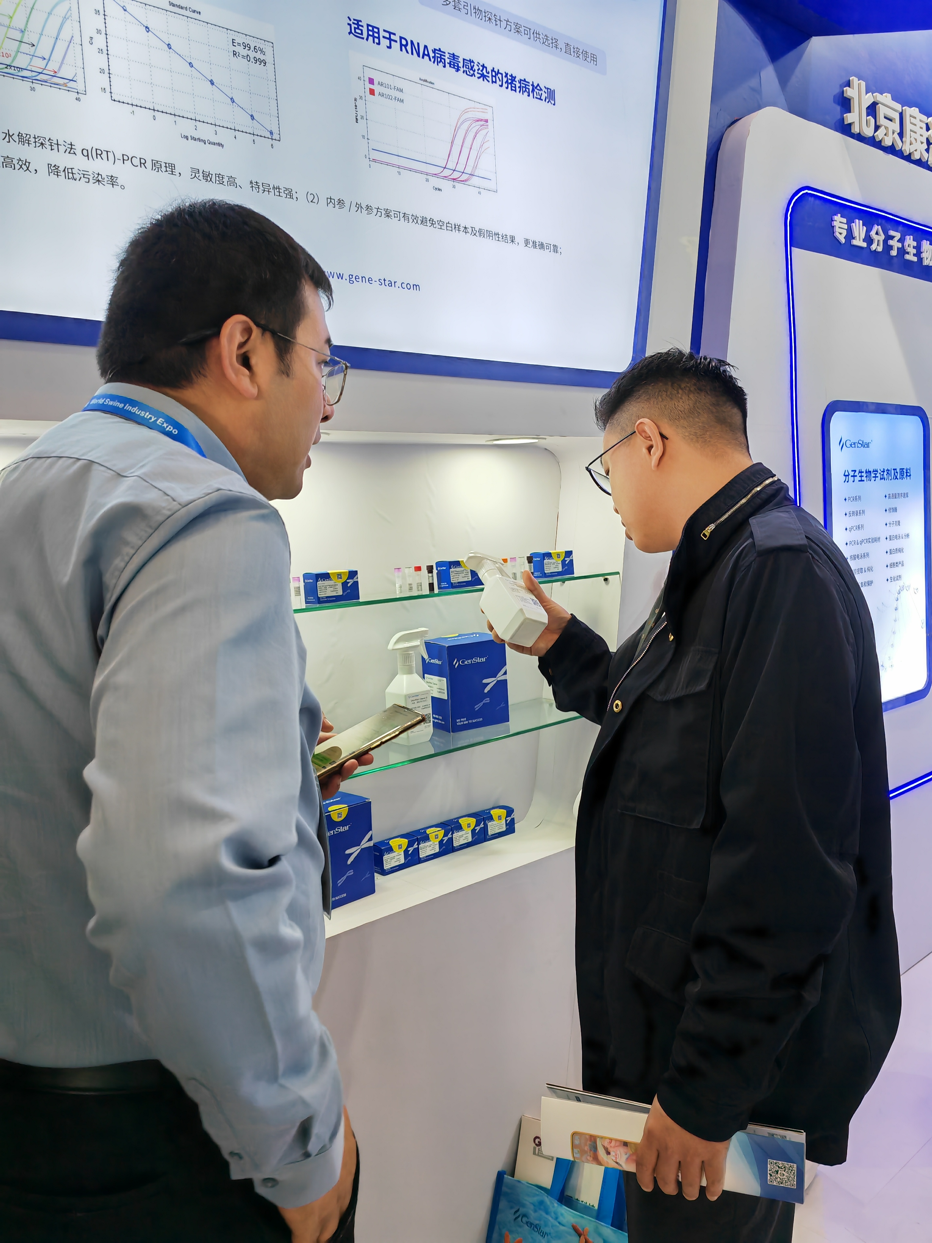 本次展會(huì),GenStar集中展示了針對(duì) DNA 病毒及 RNA 病毒檢測(cè)的探針?lè)▽?shí)時(shí)熒光定量 PCR 反應(yīng)預(yù)混液、試劑盒、酶原料等配套產(chǎn)品,可應(yīng)用于非洲豬瘟、豬藍(lán)耳、豬流行性腹瀉等豬病的科學(xué)研究,為 IVD 企業(yè)豬疫病檢測(cè)試劑盒開(kāi)發(fā)提供原料。